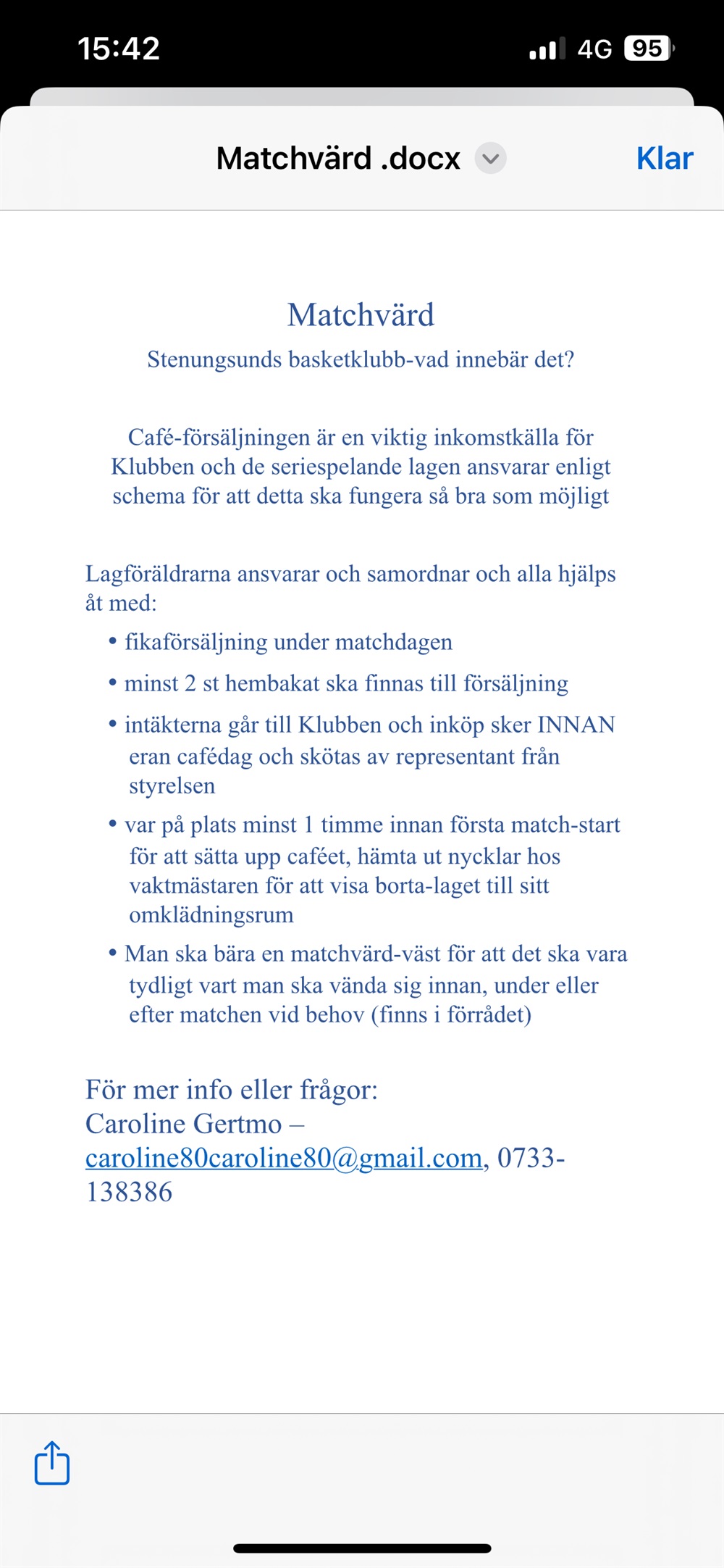 Hej på er. Nu på söndag är det ju vårt lags tur att agera match- och Cafe-värdar på Stenungsunds Arena. Se även tidigare inlägg här på sidan. Jag jag inte heller gjort detta förut men har fått följande information (se även bifogad bild)